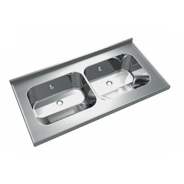 Atributos: Tampo modulado com duas cubas tanque e bordo elevado para