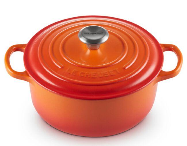 Alças espaçosas permitem o uso de luvas grossas, possibilitando uma transferência segura do fogão para o forno e do forno para mesa;
